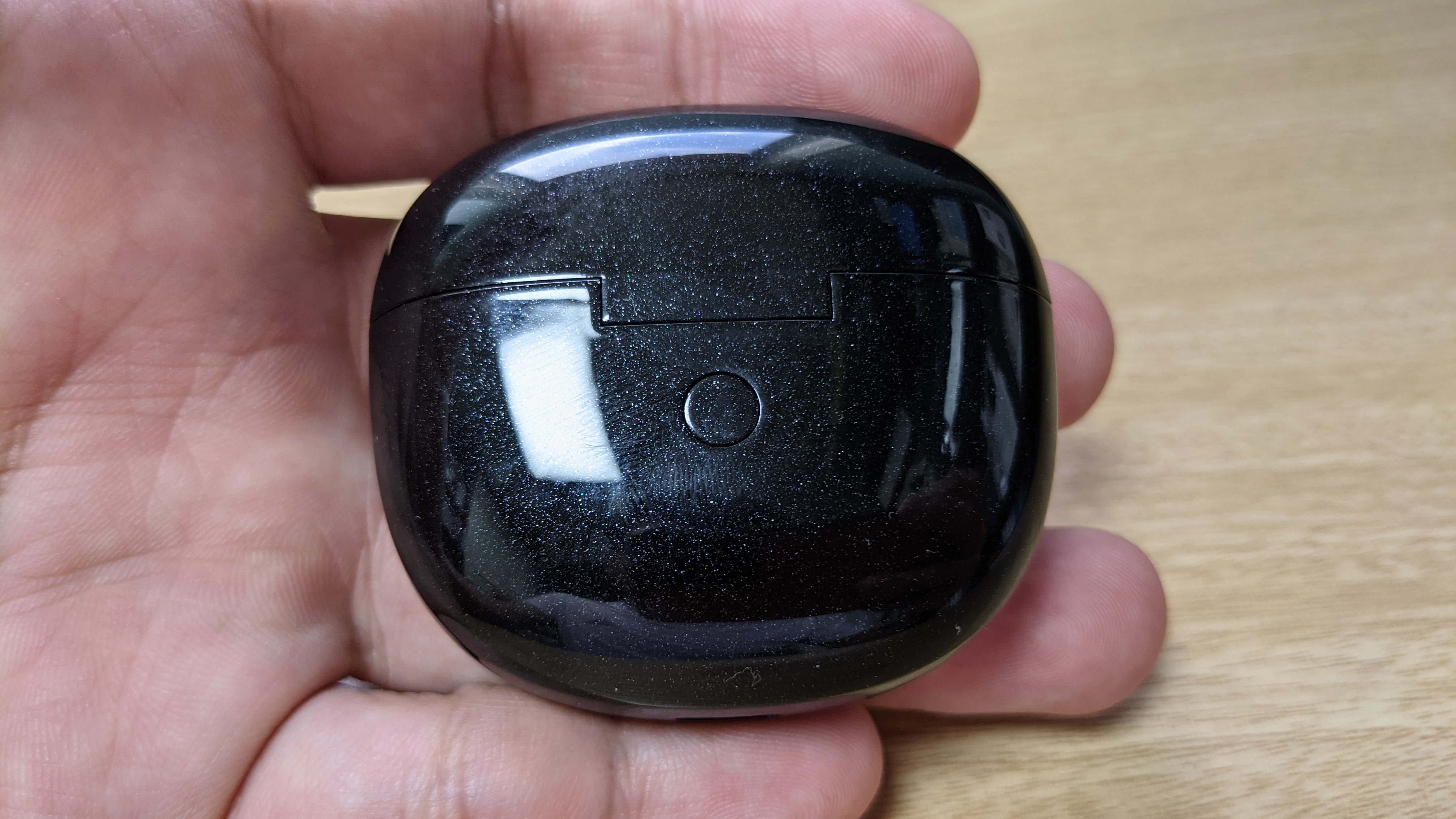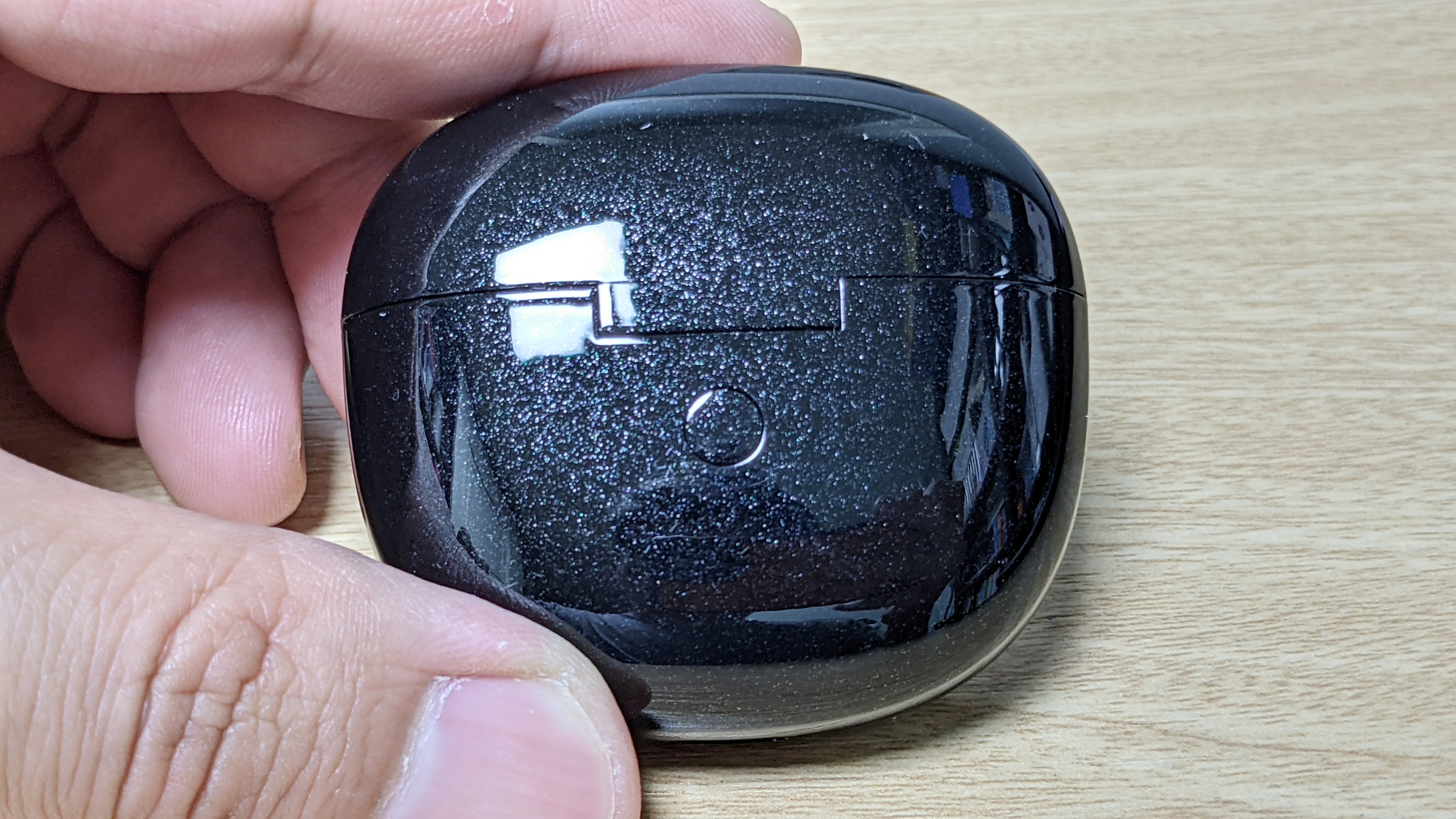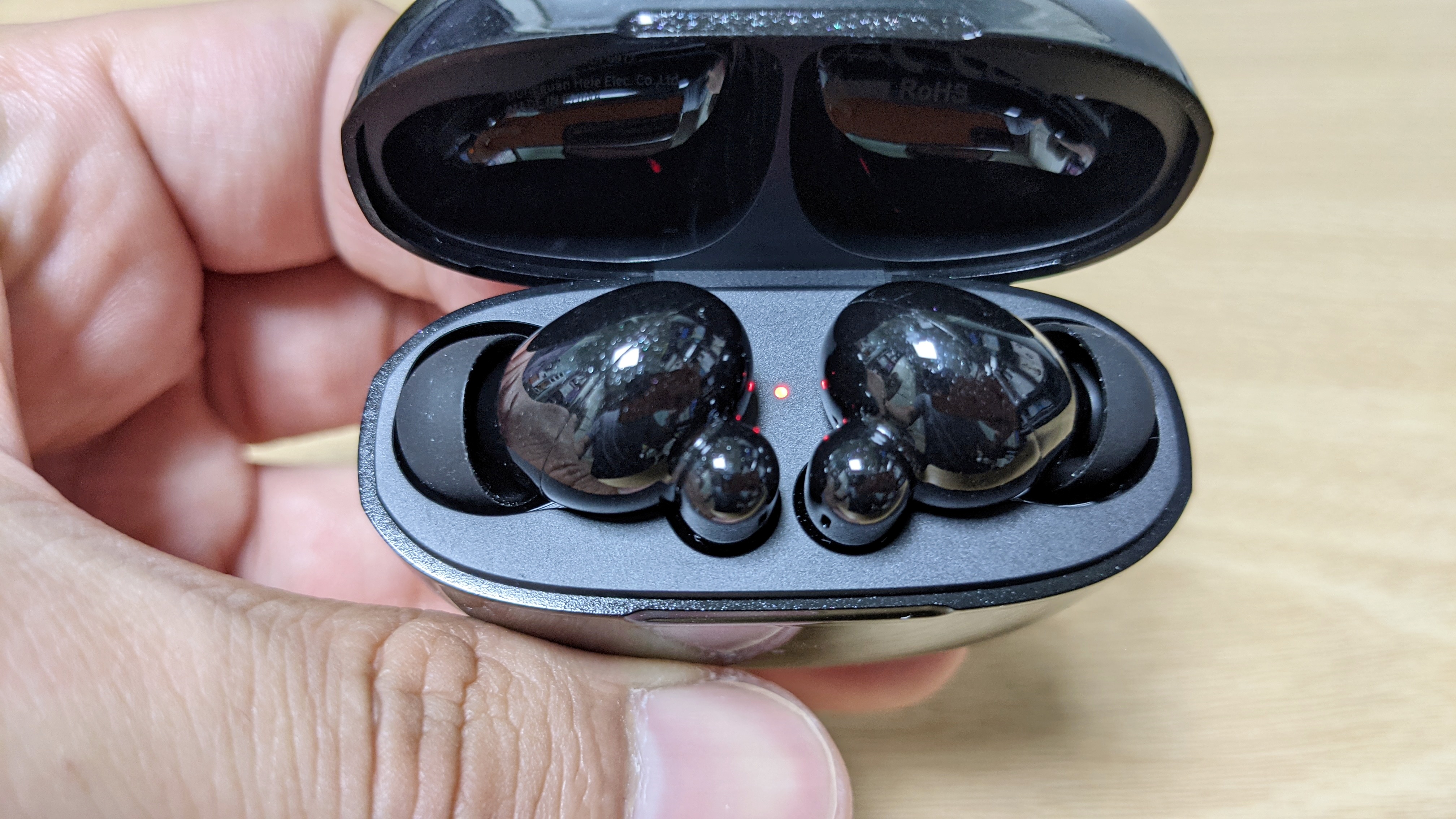 케이스 디자인은 둥근 형태이며, 케이스 크기는 고가형 블루투스 이어폰과 비교를 하면 조금 큰편입니다. 이어폰 디자인은 해드부분이 큰사이즈에 커널형 이어팁이 들어가며, 하단이 길게 나와 있어 귀에 넣고 뺄때 편리합니다. 디자인만 보면 이어폰 아래부분이 없는게 깔끔하지만, 사용 편의성은 아래부분이 있는게 편리합니다. 색상은 블랙인데 밝은 곳에서 보면 펄이 들어가 있어 반짝입니다.