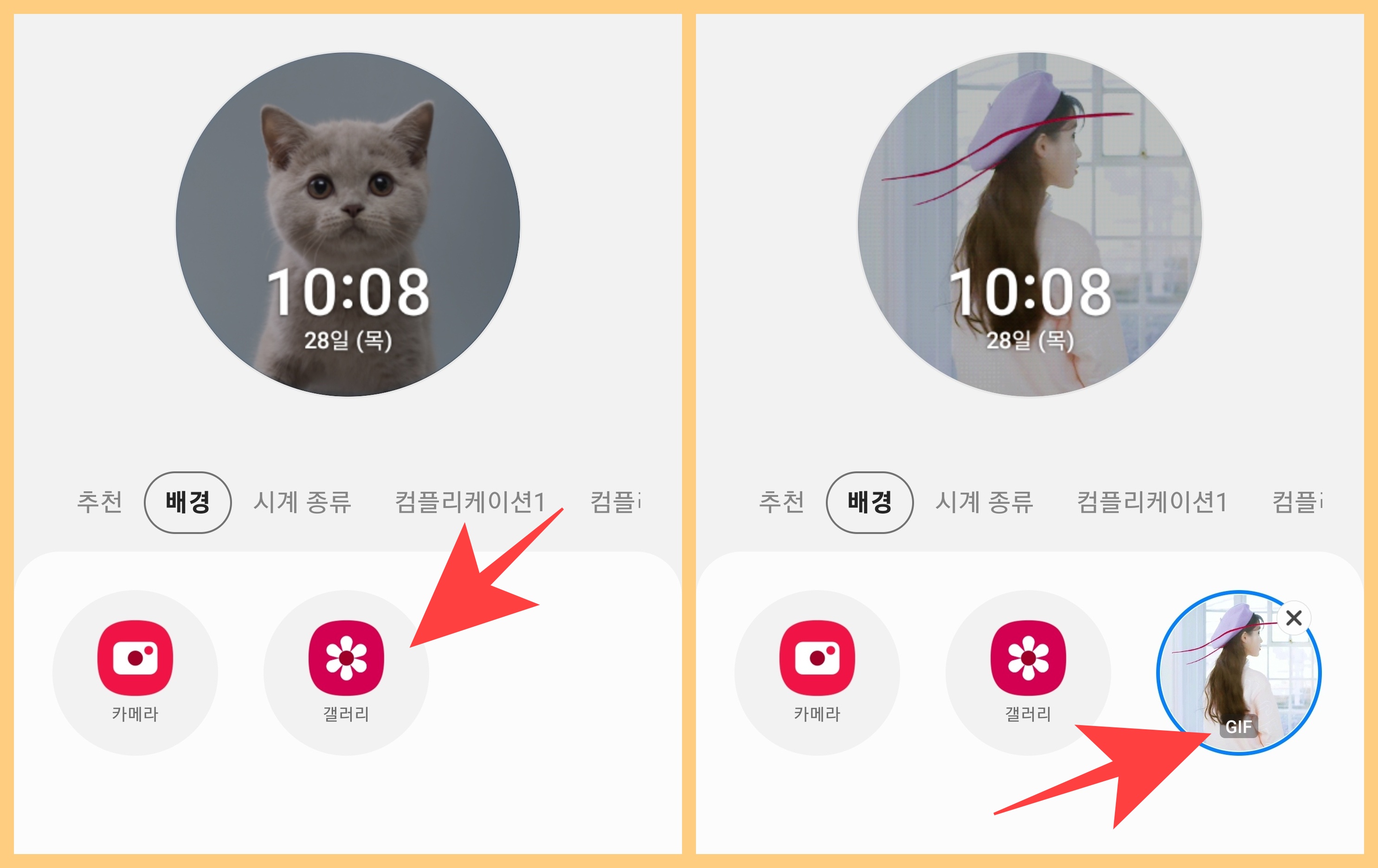 참고로 사진 1장만 되는건 아니고 여러장의 사진을 동시에 설정할 수 있습니다. 그리고 시계화면을 클릭하거나 화면이 꺼졌다 켜지면 사진이 바뀝니다. 이제 편리하게 원하는 움짤을 갤럭시워치4 배경화면에 넣어보세요.