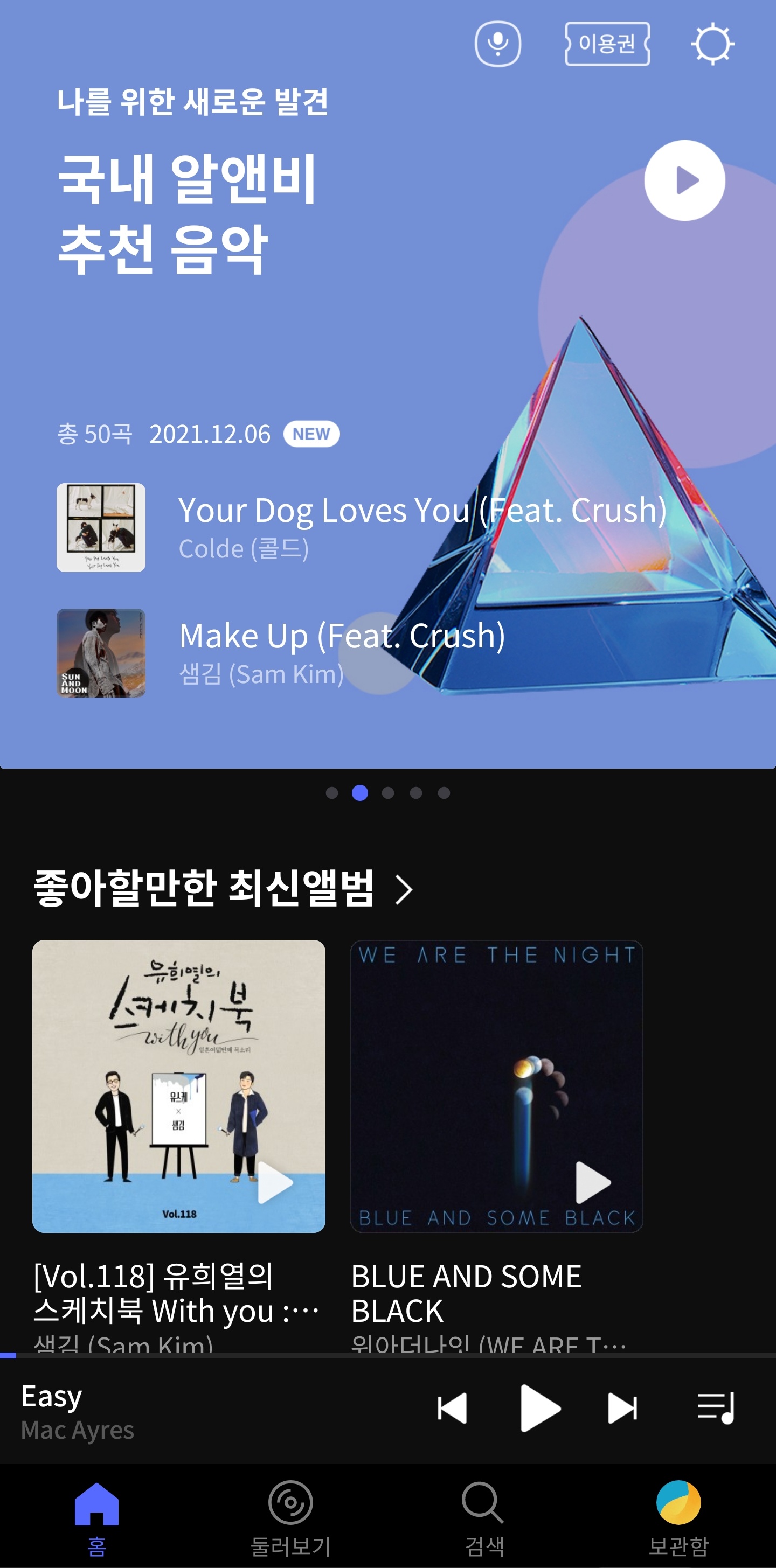 마지막으로 유튜브 뮤직으로 음악을 들을 수 있습니다. 저는 5G요금제 부가 서비스로 FLO 스트리밍을 무료로 이용할 수 있습니다. 그래서 처음엔 유튜브 뮤직을 사용하지 않았는데, 요즘은 계속해서 사용을 하고 있습니다. 최근에 유튜브로 영상을 자주 안보게 되어서 프리미엄 서비스를 해제하려고 했는데, 유튜브 뮤직때문에 계속해서 유지를 하고 있습니다.