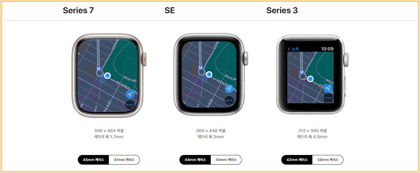 하지만 너무 오래된 제품이라 지금 나오는 제품과 비교를 하면 디스플레이 크기가 너무 작습니다. 그래서 지금은 입문용으로 애플워치3보다 애플워치SE를 추천합니다. 스마트폰과 같이 스마트워치도 화면이 클 수록 사용하기 편리합니다. 신제품이 출시되도 기존 제품을 계속 판매하면 구매자 입장에서 다양한 선택지 중 선택을 할 수 있어 좋습니다. 하지만 전자기기의 경우 신제품이 1년에 한 번씩 나오고 있는 상황에서 4년이 넘은 제품은 이제그만 보내줘도 괜찮을거 같습니다.