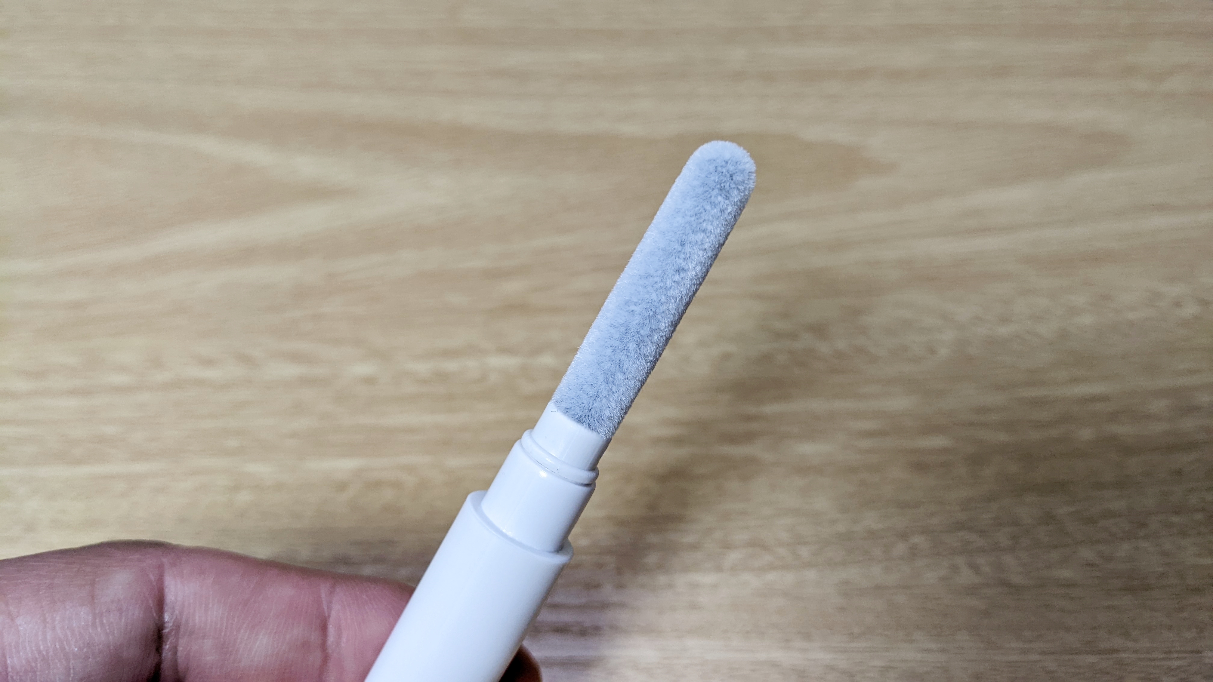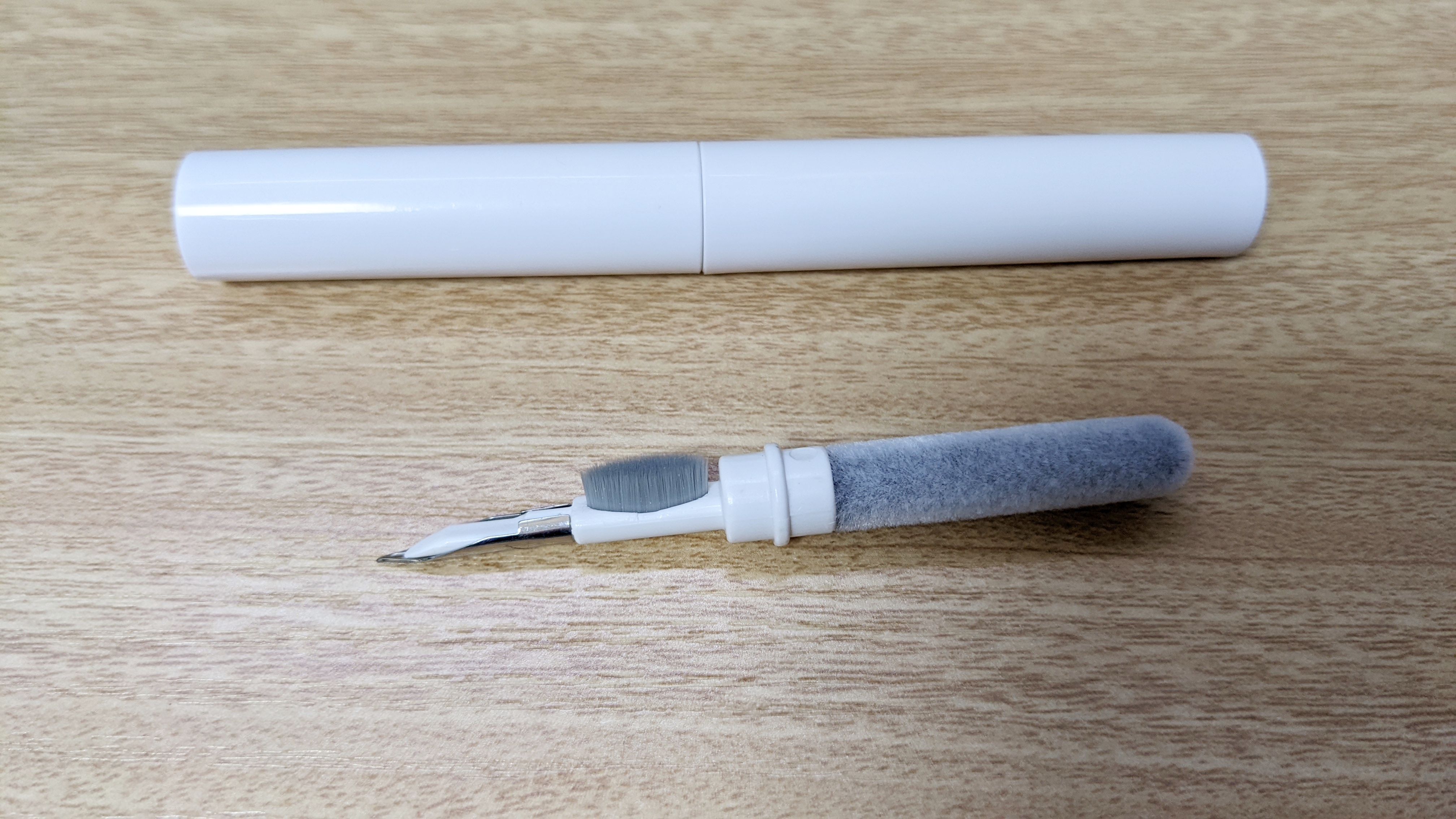 박스를 열면 흰색 스틱이 하나 있는데, 언뜻보면 화장품 같이 생겼네요. 뚜껑을 열면 위 아래로 다른 청소도구가 들어있습니다. 위쪽은 뾰족한 펜과 먼지를 털어낼 때 사용할거 같은 솔이 있고, 아래쪽은 털달린 봉이 있습니다.