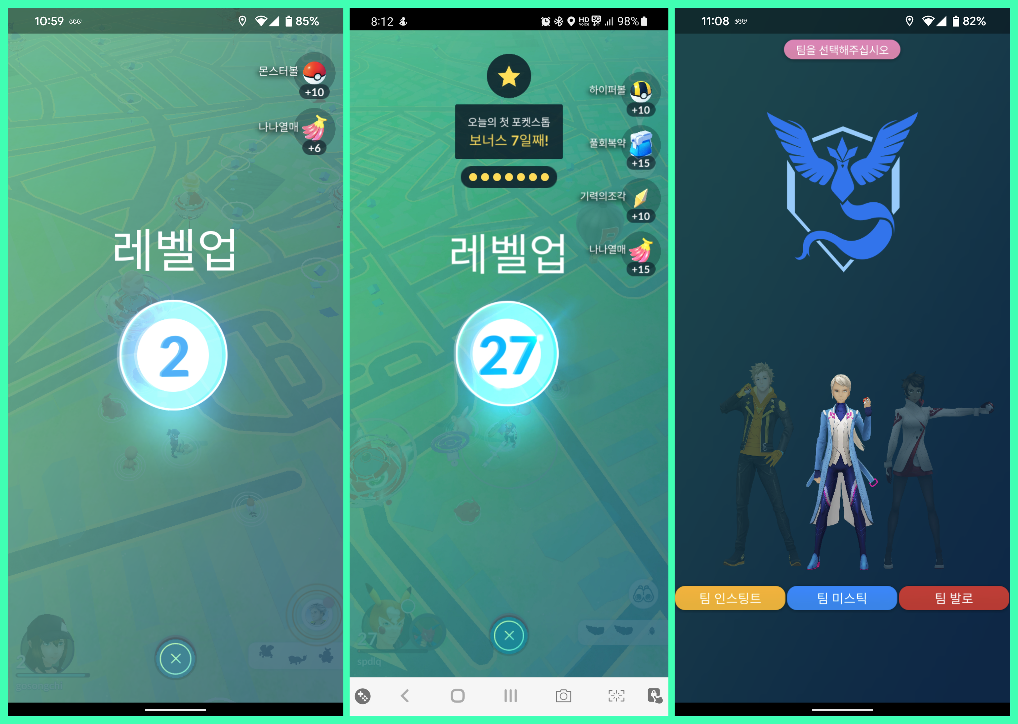 포켓스탑과 팀선택