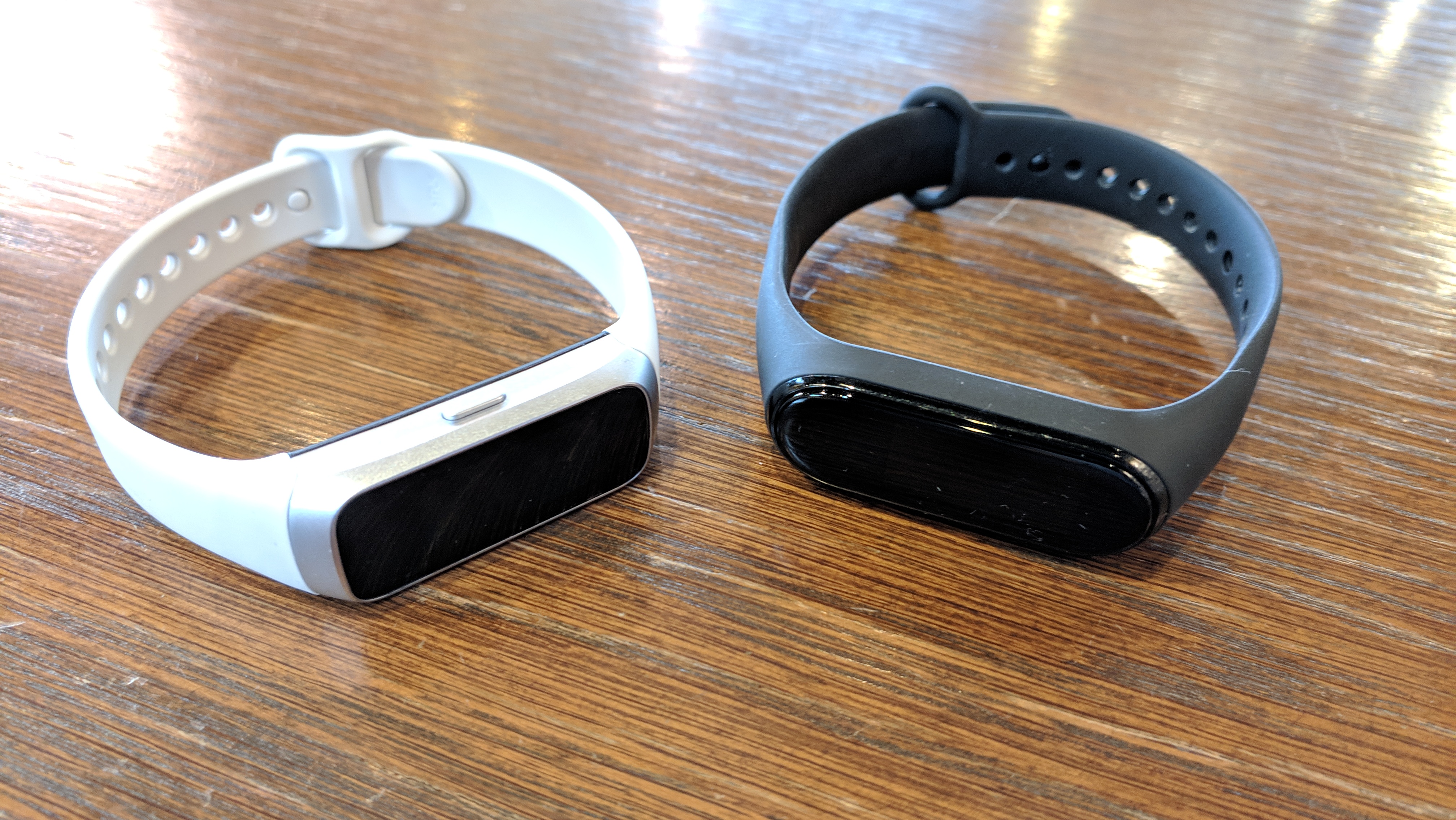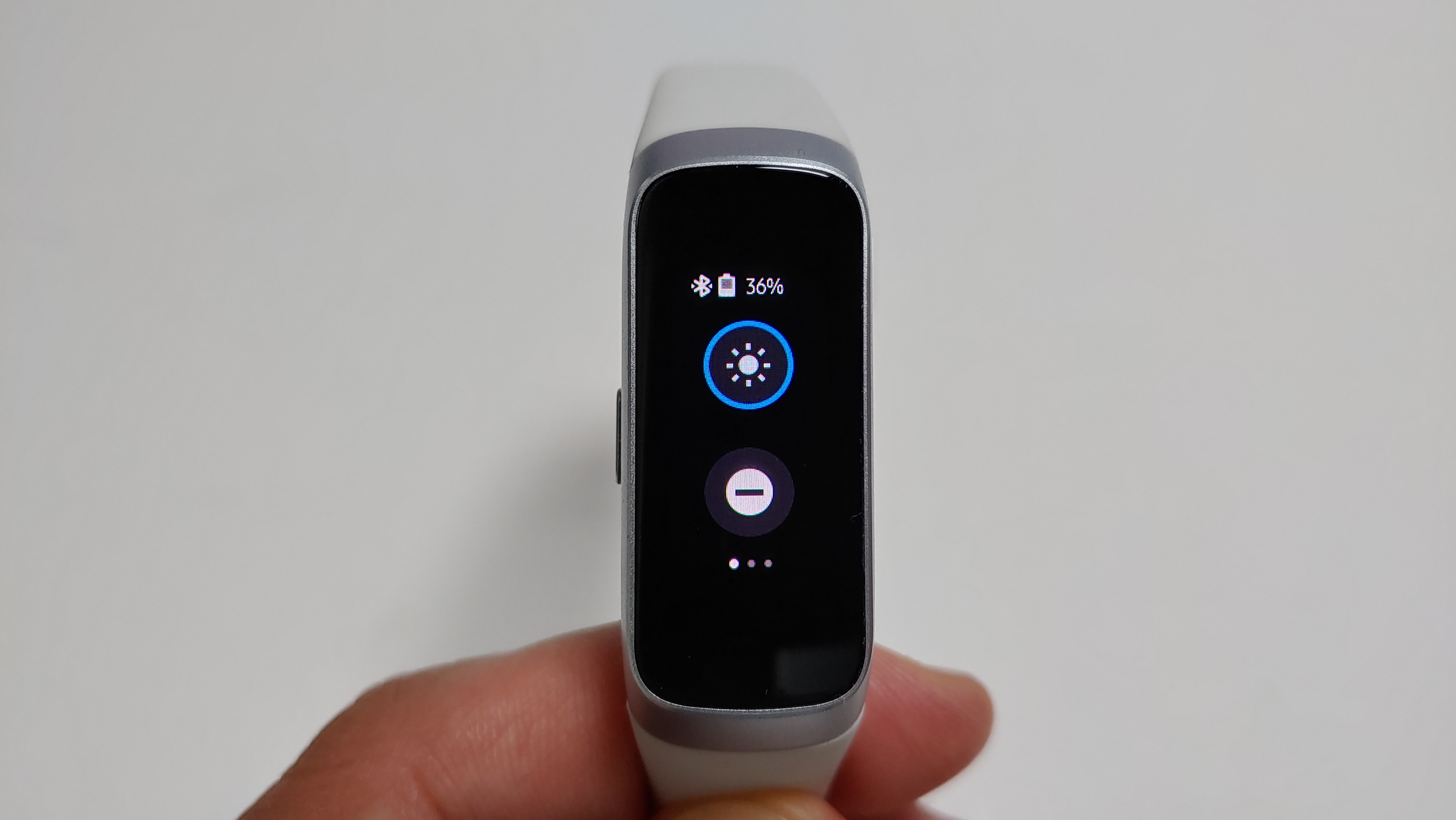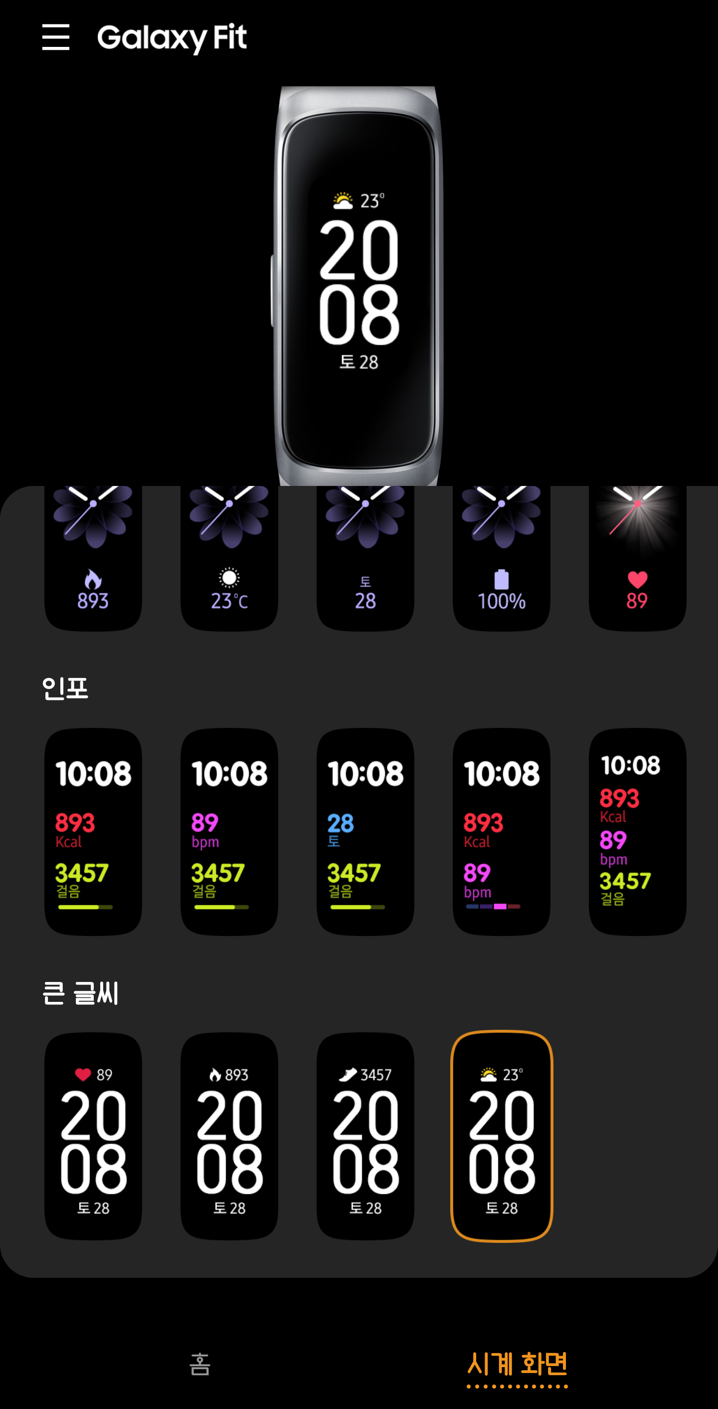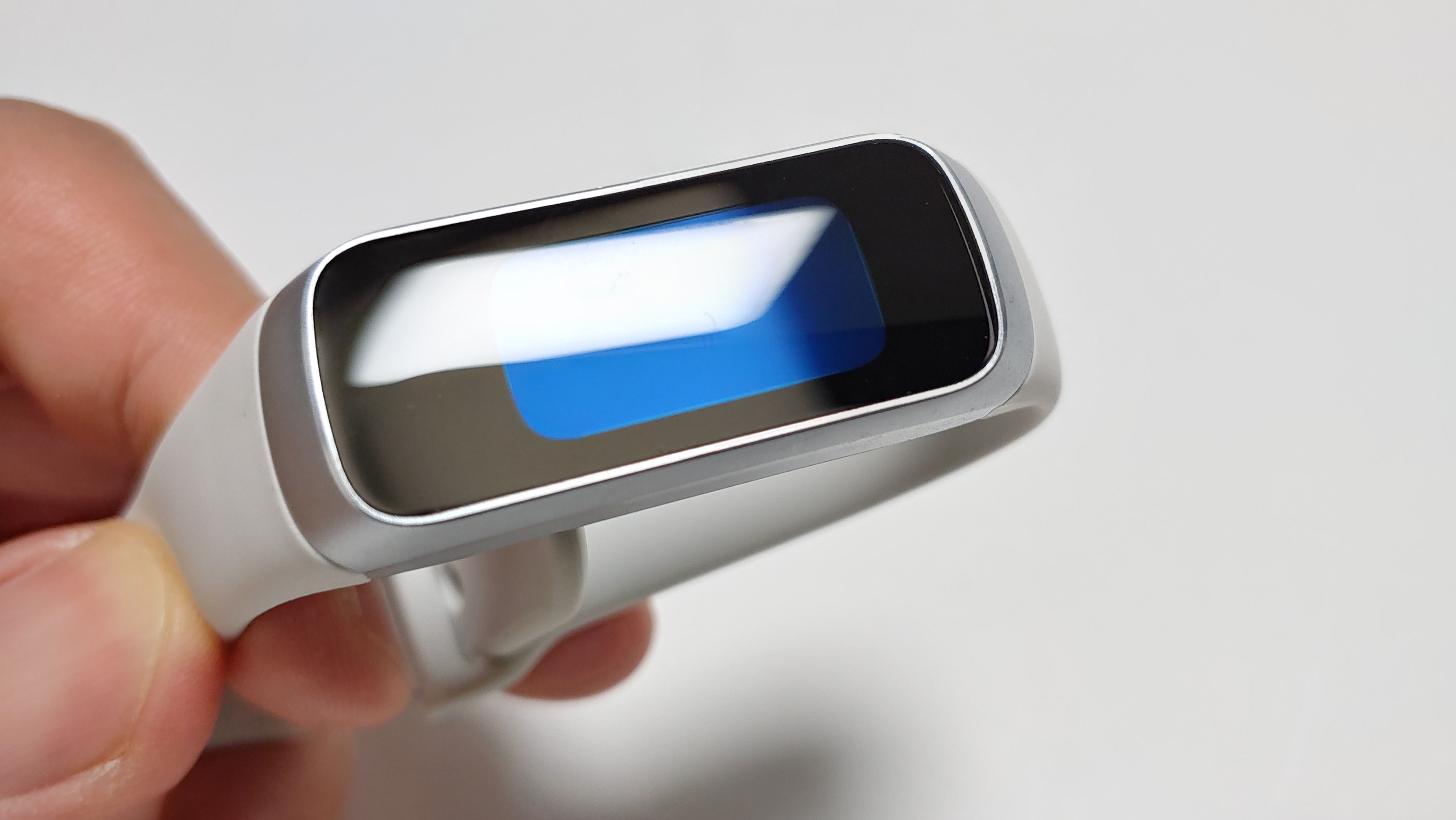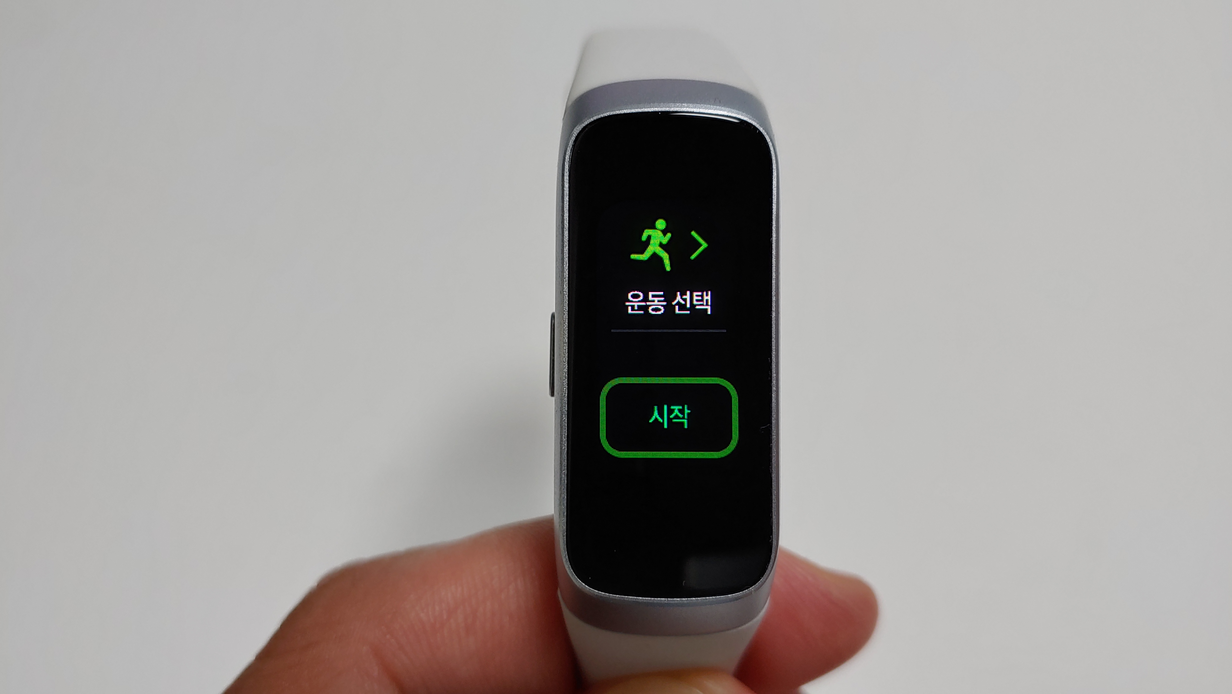 갤럭시 핏과 핏e가 있는데, 핏e는 흑백 디스플레이 / 핏은 컬러 디스플레입니다. 아무래도 흑백보다는 컬러가 눈에 잘 들어와 보기는 좋습니다. 밴드 본체가 검은색으로 모두 디스플레이처럼 보이지만 실제 디스플레이 크기는 그렇게 크진 않습니다. 이부분은 미밴드4도 동일한 부분입니다.