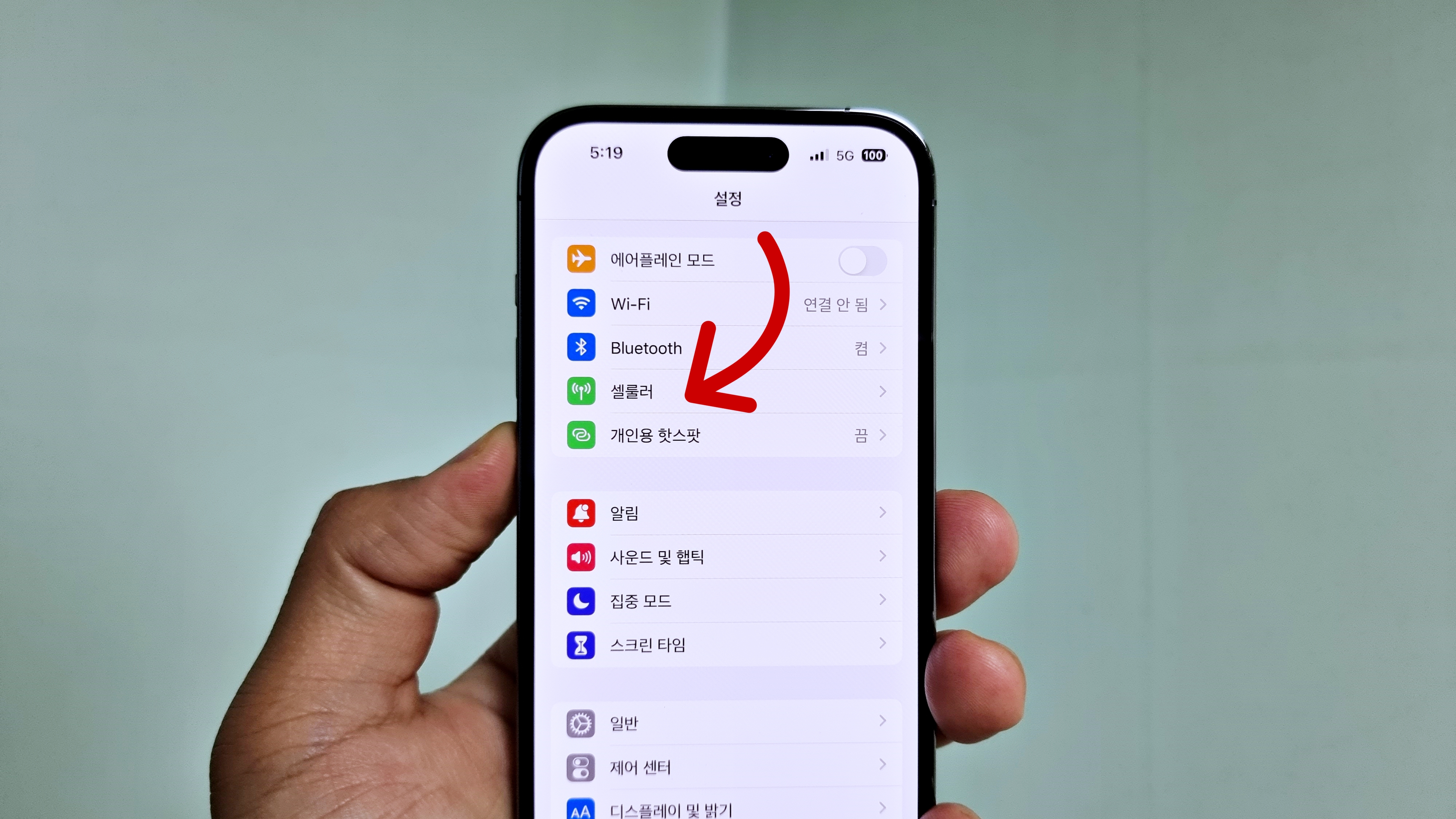 아이폰 통신 설정은 셀룰러에서 할 수 있습니다.