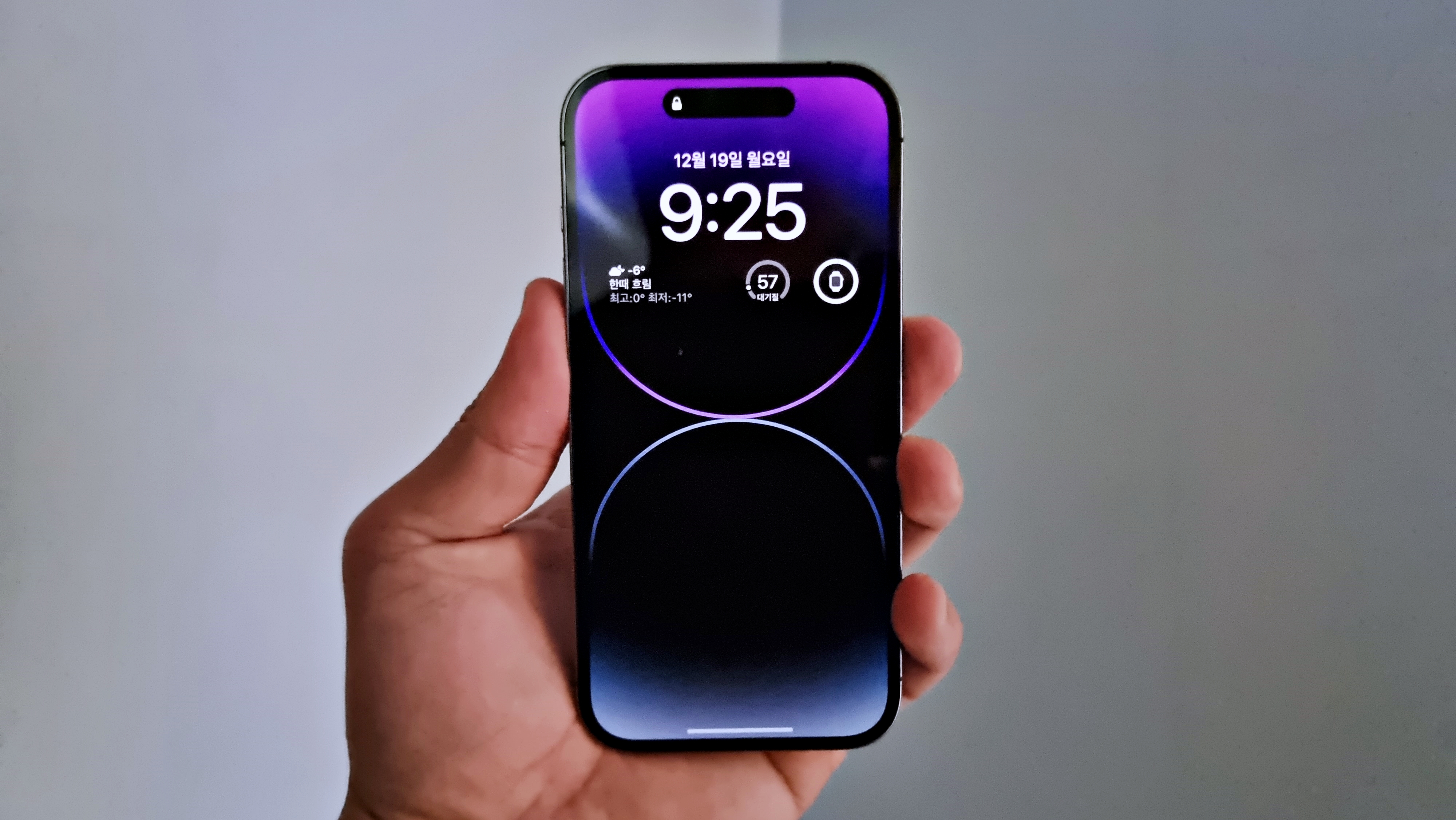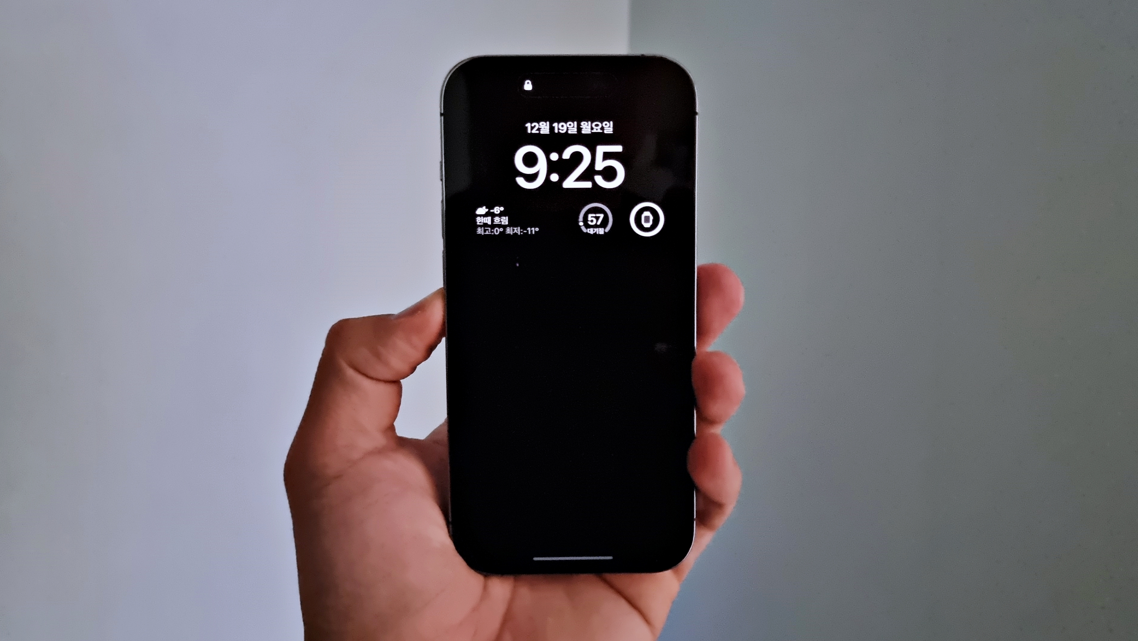 이번에는 배경화면을 끈 상태의 AOD인데, 갤럭시 등 다른 스마트폰에서 흔히 볼 수 있는 방식입니다. 저는 배경화면이 있는 상태의 AOD도 마음에 들지만 밤에는 배경화면을 끈 상태로 사용하고 싶네요. 그래서 추후 업데이트에는 AOD 배경화면을 시간대별로 설정할 수 있었으면 좋겠네요.