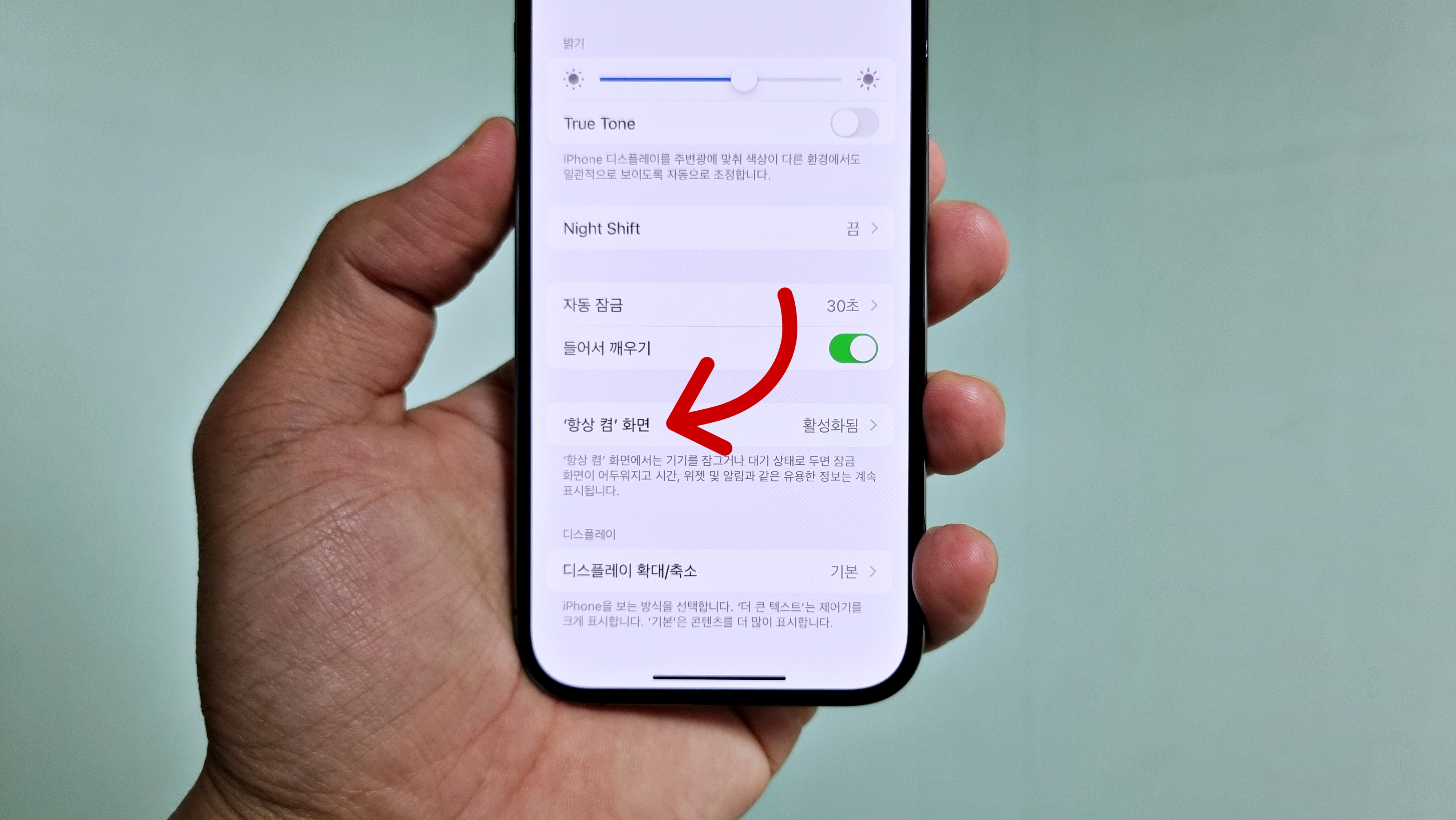 아이폰 14 프로 AOD는 설정에서 디스플레이 및 밝기로 들어가야 합니다.