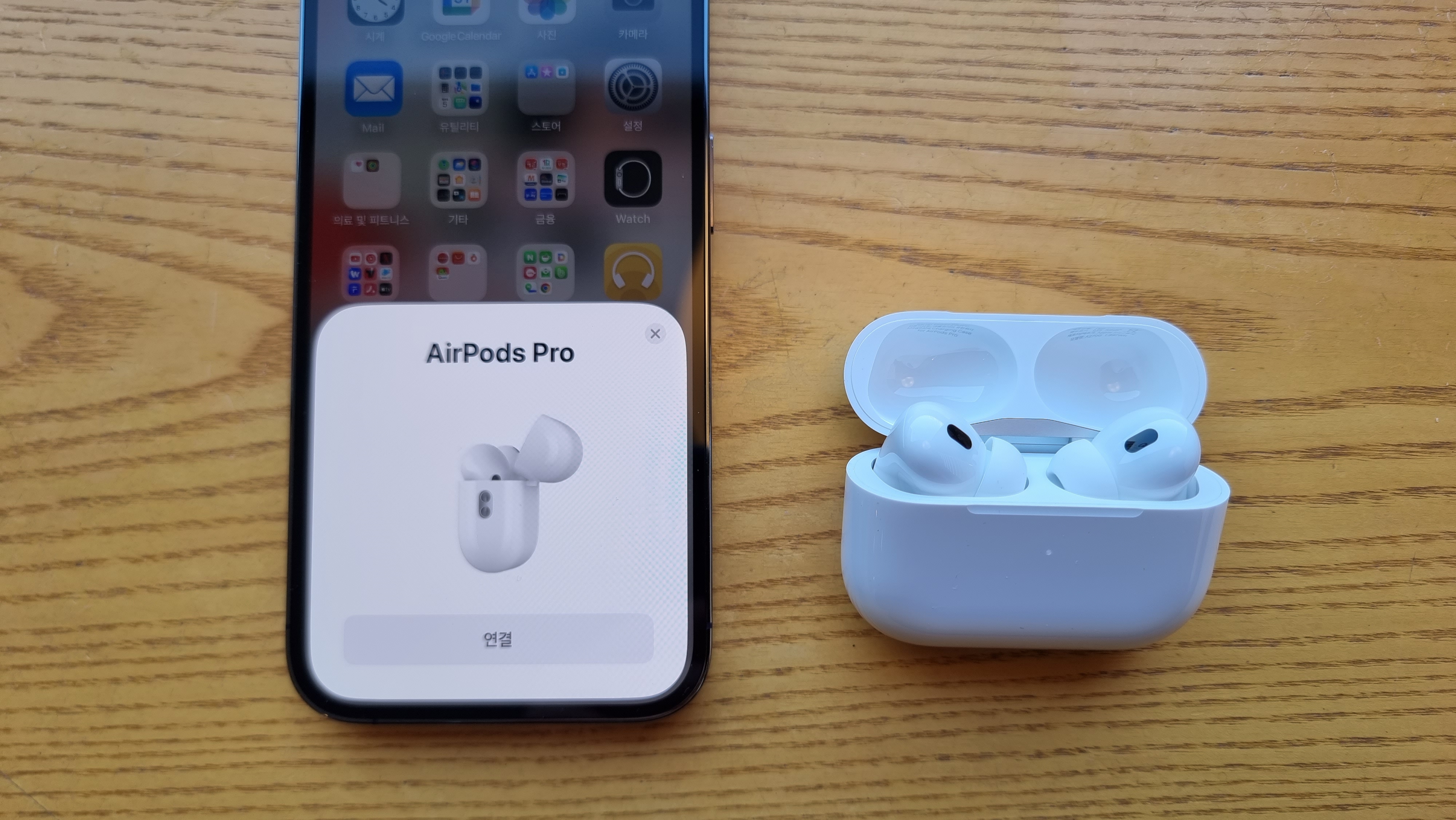 에어팟 프로 2세대 케이스 뚜껑을 열면 근처에 있는 아이폰에서 자동으로 인식하고 연결 준비를 해줍니다. 화면에 떠있는 AirPods Pro 연결을 눌러주면 아주 쉽게 연결이 됩니다.