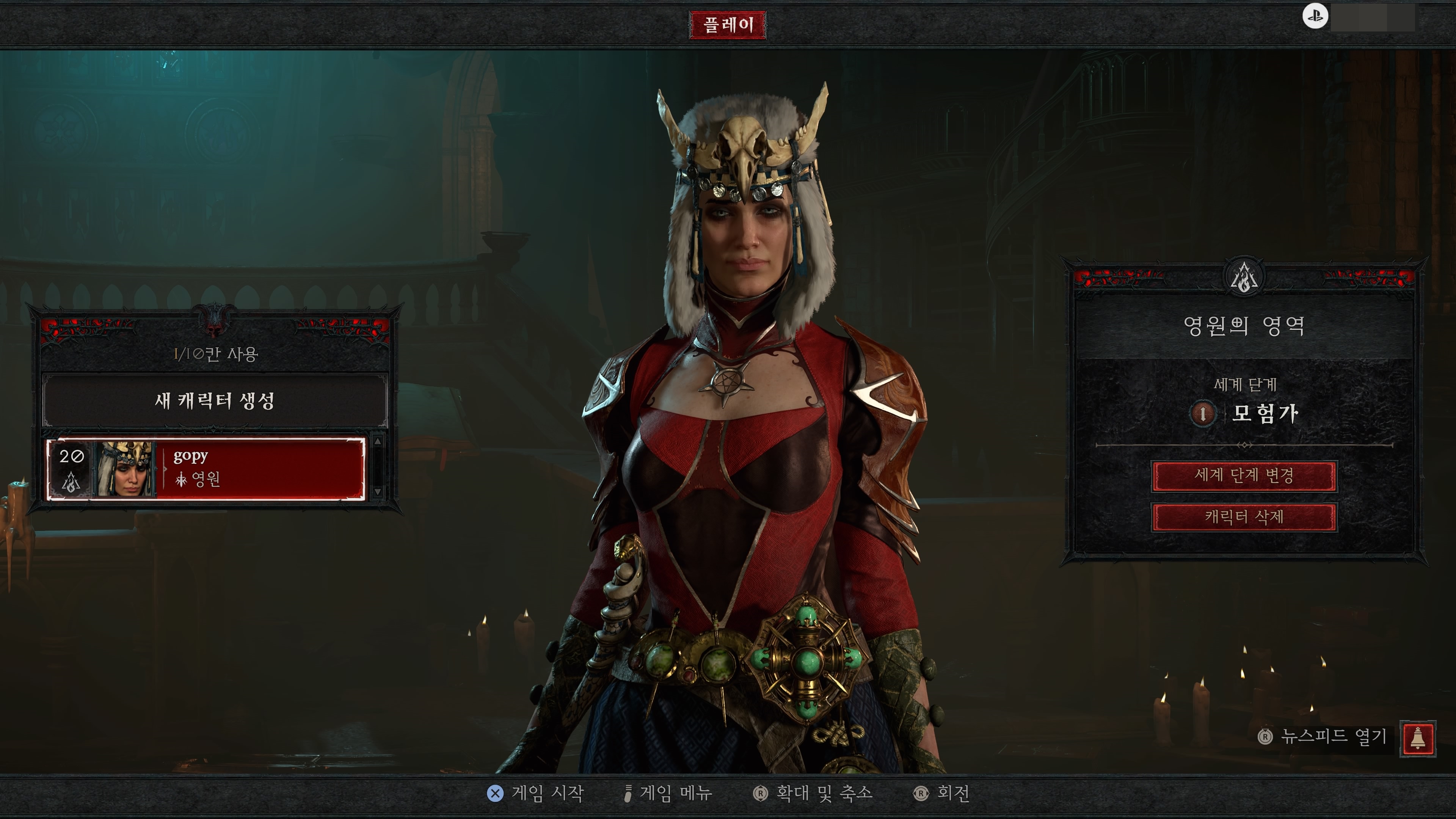 디아블로4는 기기간 크로스플레이를 지원해서, PC 유저와 플스 유저가 만나 같이 게임을 할 수 있습니다. 게이밍노트북을 갖고 있지만 GTX 1660으로 그래픽카드 성능이 약간 애매하기도 하고, 패드로 편하게 게임을 하고 싶어 이번에는 PS5 버전으로 게임을 했습니다.