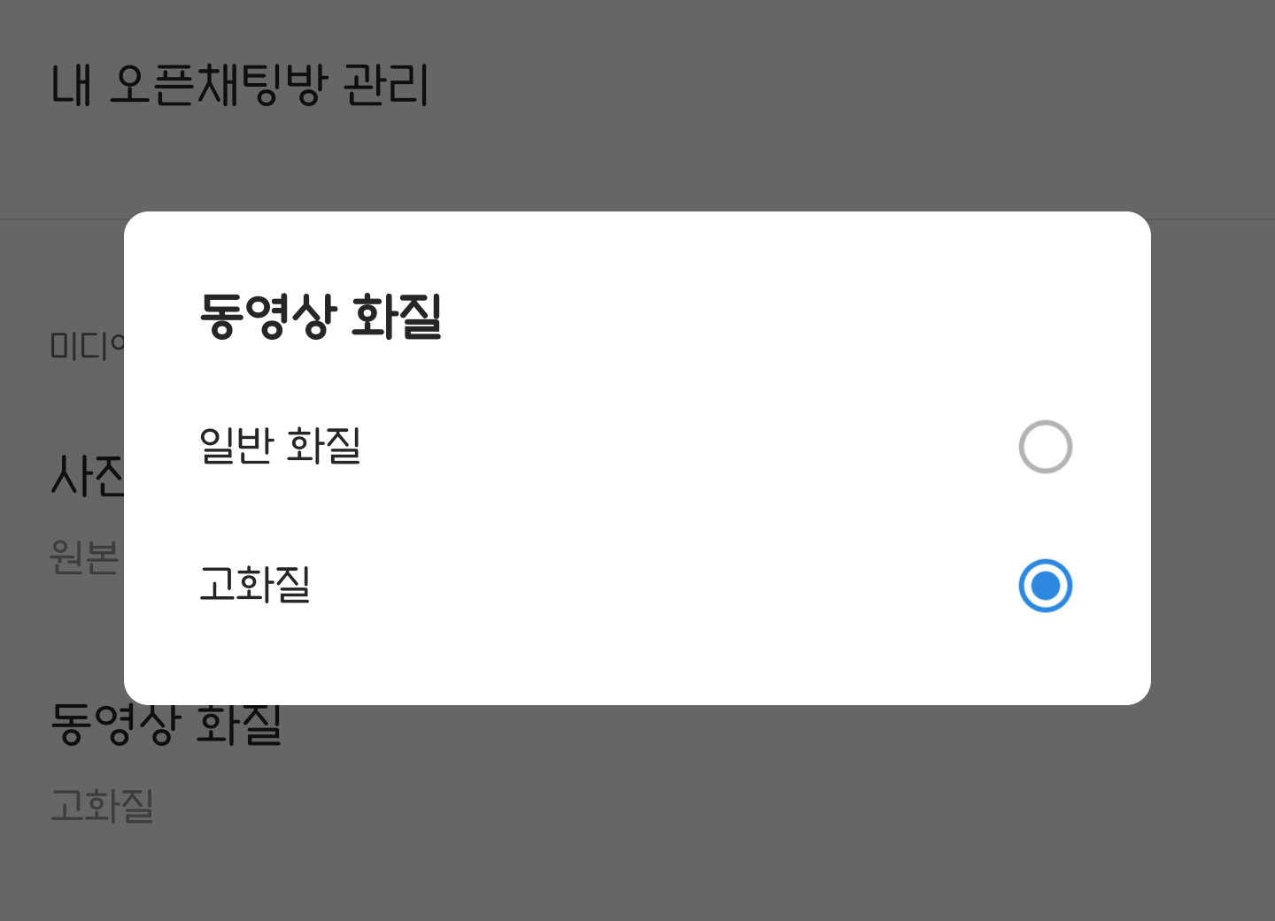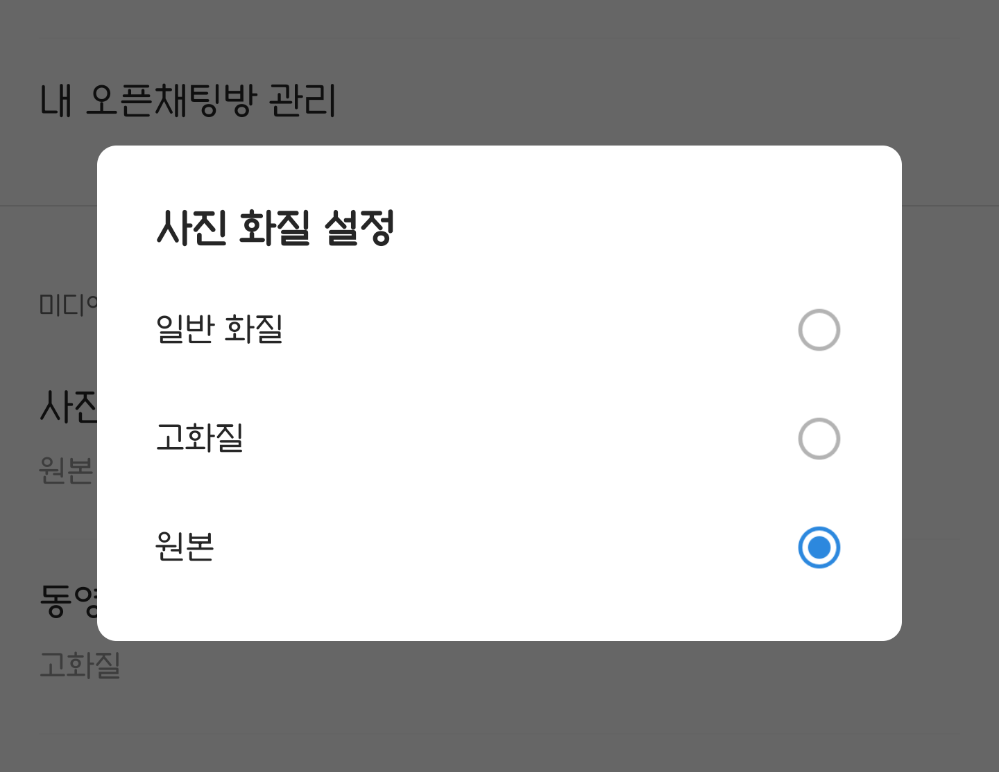 사진 화질 설정은 일반 화질 / 고화질 / 원본을 선택할 수 있습니다. 동영상 화질은 일반 화질 / 고화질 중 선택할 수 있습니다. 개인적으로 사진은 원본, 동영상은 고화질을 선택해서 사용합니다.