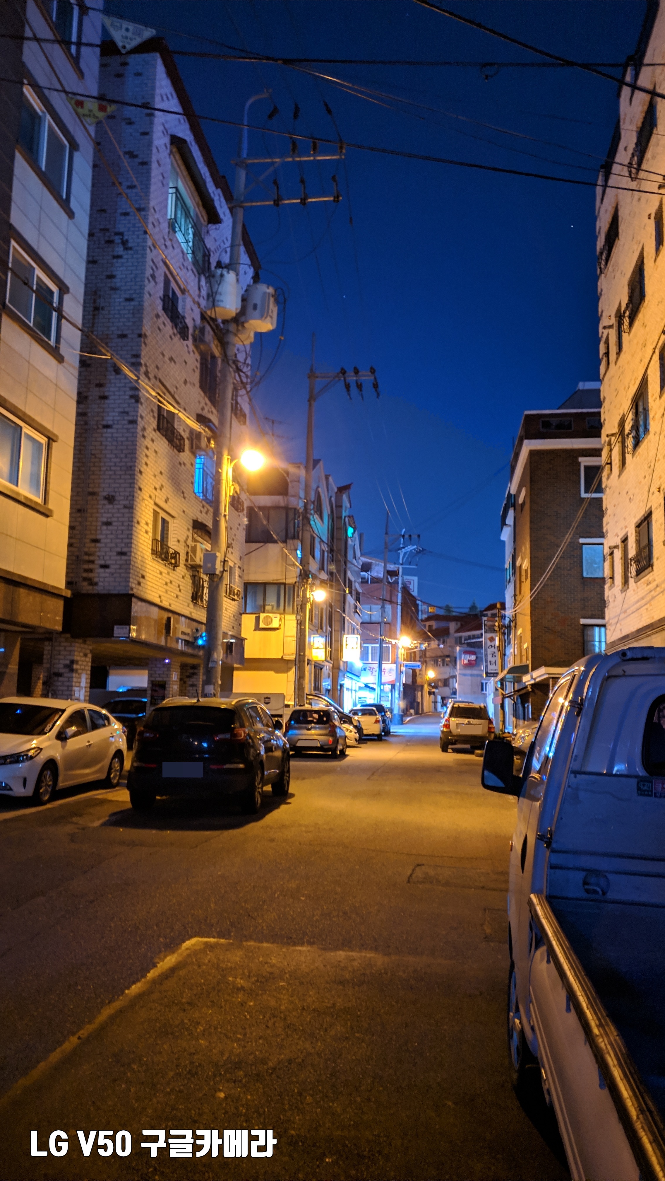 이제 가장 중요한 야간 사진을 비교해 보겠습니다. 야간 사진의 경우 LG V50은 구글 카메라 야간모드를 사용해 촬영했습니다. LG V50의 구글카메라의 경우 APK파일로 설치해 사용하는 부분이라 구글 픽셀의 순정 구글카메라와 성능에서 차이가 날 수 있습니다.