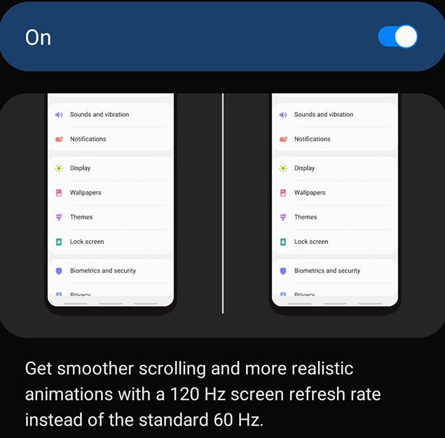 이번에도 전 시리즈와 마찬가지로 갤럭시 S11 / S11 플러스 / S11e로 출시될 것으로 보입니다. 화면 크기는 6.4인치 / 6.7인치 / 6.9인치로 나오며, 4G와 5G 모델로 출시된다고 합니다. 국내에는 5G모델만 출시할 가능성이 크다고 합니다. 갤럭시 S10e의 경우 평평한 디스플레이었는데, 이제는 모두 화면 끝이 라운드 처리된 디스플레이로 나온다고 합니다. 그리고 많은 분들이 기다리던 높은 주사율로 출시 될것이 거의 확정적입니다. ONE UI 2 베타에서 120Hz 주사율을 선택하는 메뉴가 발견되었습니다. 주사율이 높으면 더욱 부드러운 화면을 볼 수 있어 좋지만, 배터리가 빠르게 소모된다는 단점이 있습니다. 그래서 주사율을 선택할 수 있는 메뉴를 넣어 주는거 같습니다.